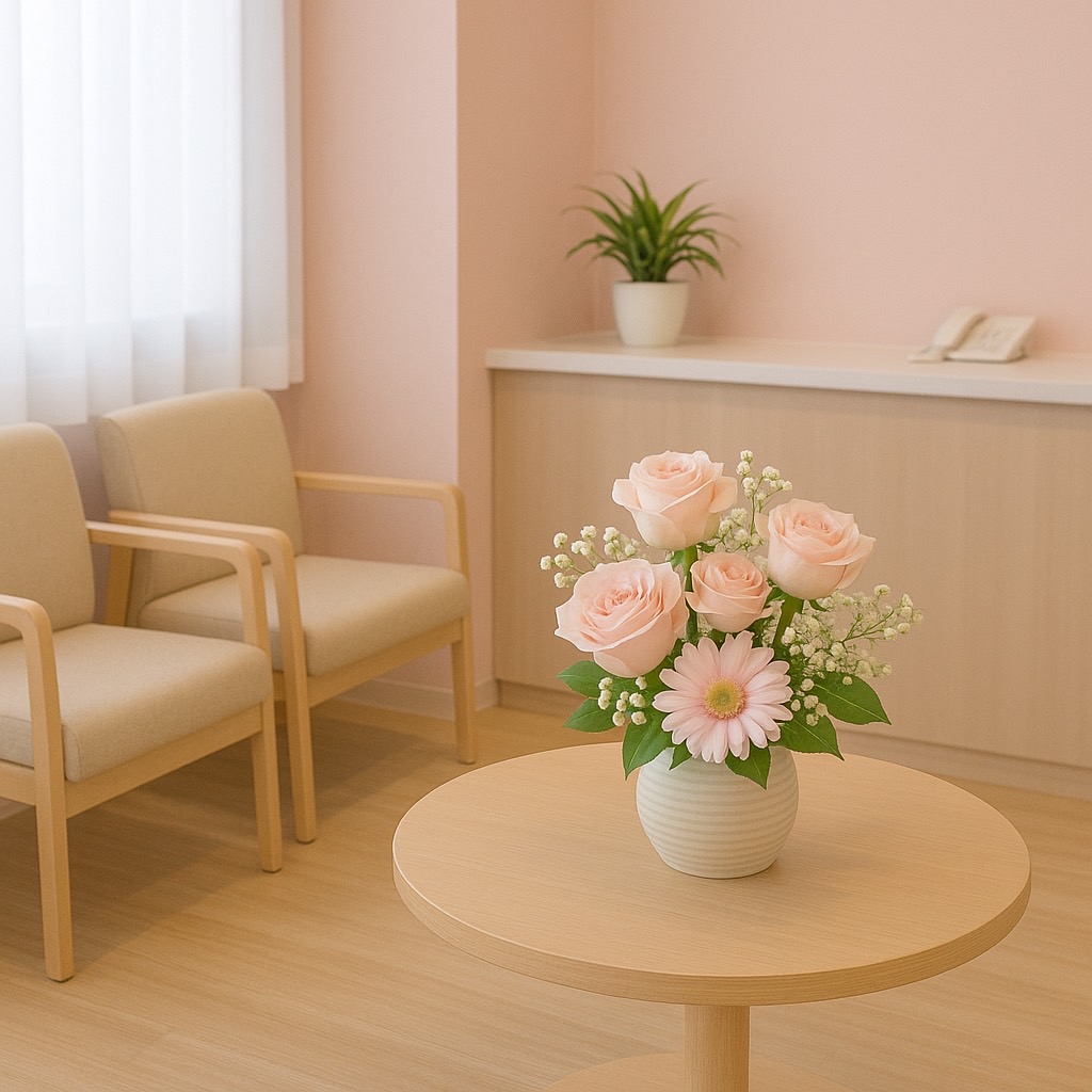 白と淡いピンクを基調に、働きやすく動きがスムーズで、スタッフ同士が自然にコミュニケーションをとれる空間にしました。