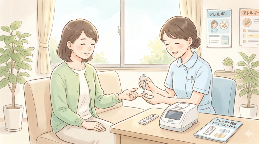 従来の血液検査(特異的IgE抗体検査)では、結果が出るまで数日かかることが一般的です。